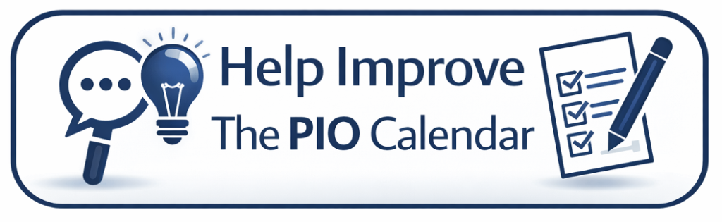 The PIO Calendar is a free, community-supported resource. Events and trainings are submitted by third parties or found on open-source websites. Inclusion does not imply endorsement.
